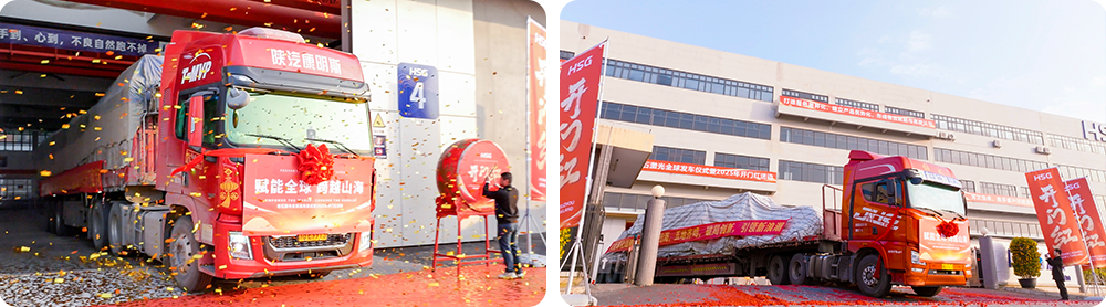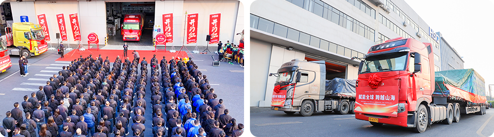 活動主會場設在佛山總部,整裝待發的運輸車輛整齊列陣,伴隨著激昂的音樂聲,禮炮齊鳴,發運車一馬當先,新一年的奮進激情被點燃。與此同時,蘇州、濟南及泰國基地同步舉行發車儀式,集中交付多批暢銷設備,展示了宏石激光強大的生產制造與高效交付能力,也全方位展現出公司穩健運營、逆勢增長的良好態勢。