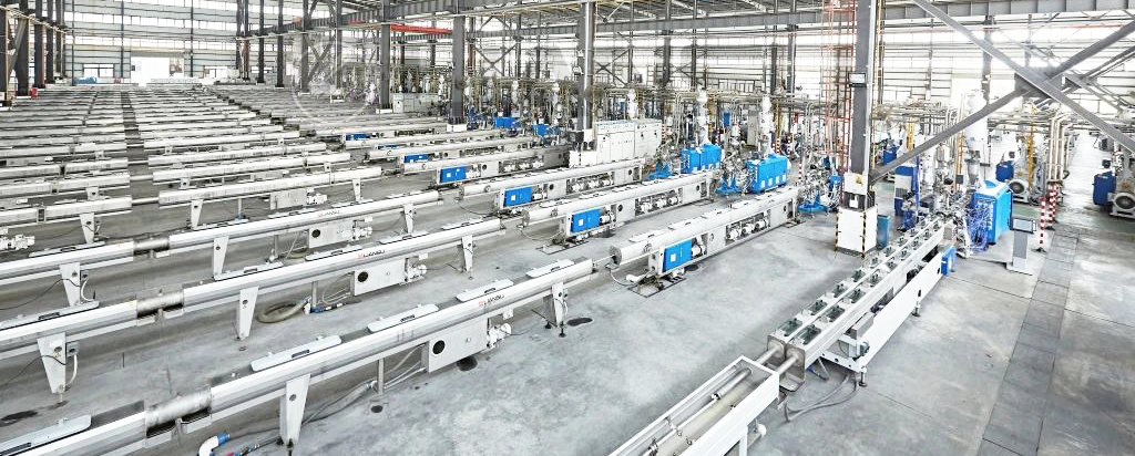 近日聯(lián)塑機(jī)器順利交付長(zhǎng)達(dá)70多米的實(shí)壁管擠出生產(chǎn)線,這是聯(lián)塑機(jī)器在拉美地區(qū)銷售的第一條2米HDPE實(shí)壁管擠出線。