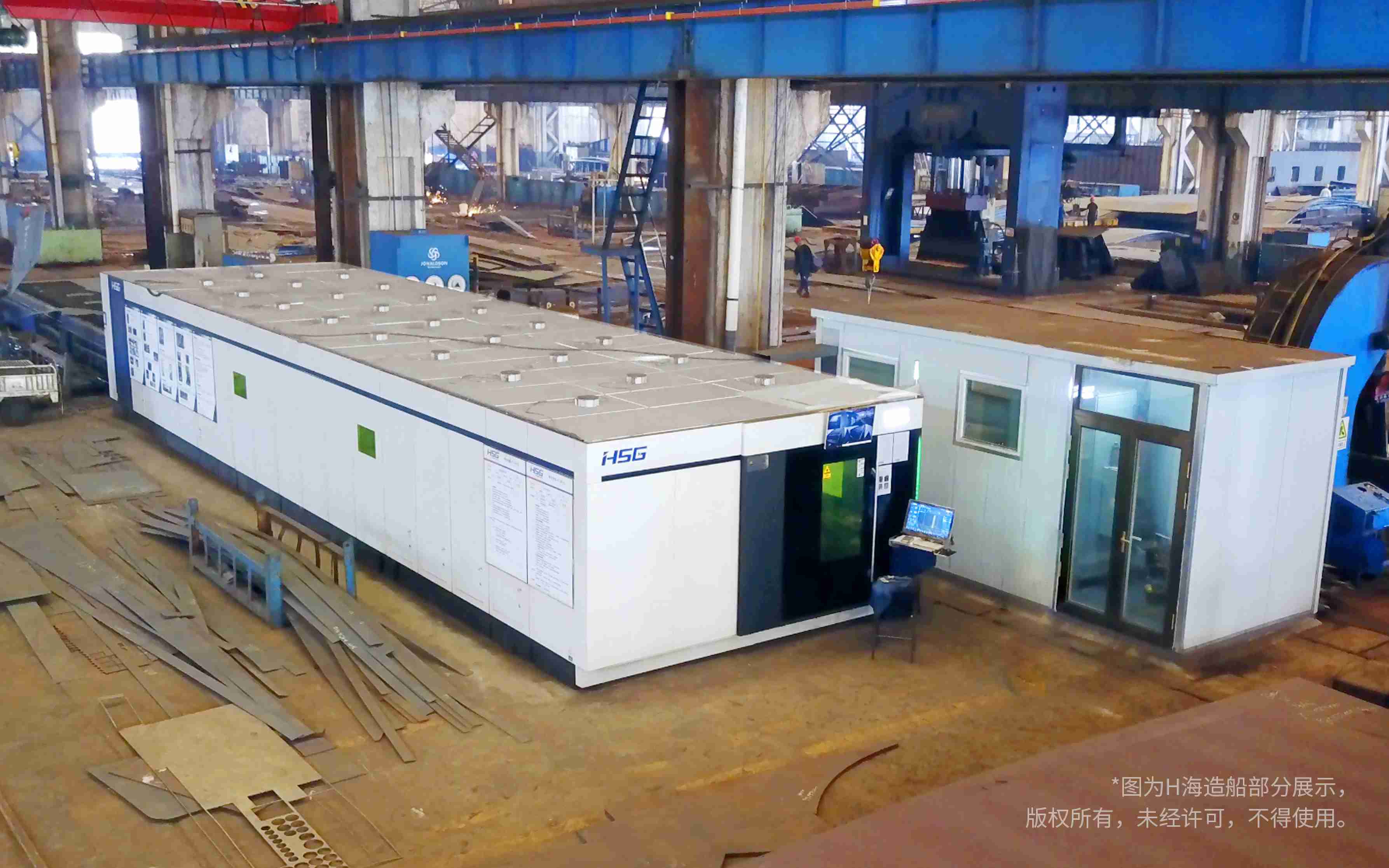 “H海造船這幾年設(shè)備更新是比較多的,2021年10月采購兩臺宏山激光12000W GT ProⅡ總線高功率激光切割機(jī),12月中旬投入使用,效果挺好;2022年3月又采購一臺20000W GH ProⅡ總線高功率激光切割機(jī),已經(jīng)在運(yùn)行,不管切割效率還是切割質(zhì)量都挺好,快、精、準(zhǔn)!只要功率達(dá)到,20mm以下的鋼板切割同比等離子最多快3倍。”當(dāng)問及H海造船近年來訂單量何以迅速增加,何處長表示首先就是設(shè)備,設(shè)備是第一生產(chǎn)力,沒有好設(shè)備造不了船。