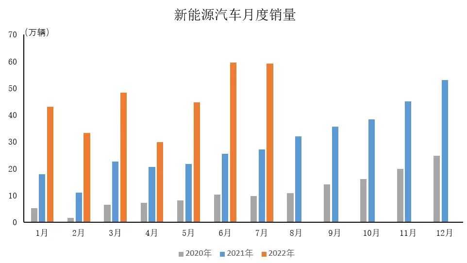 2020-2022年中國(guó)汽車月度出口量、新能源汽車月度銷量